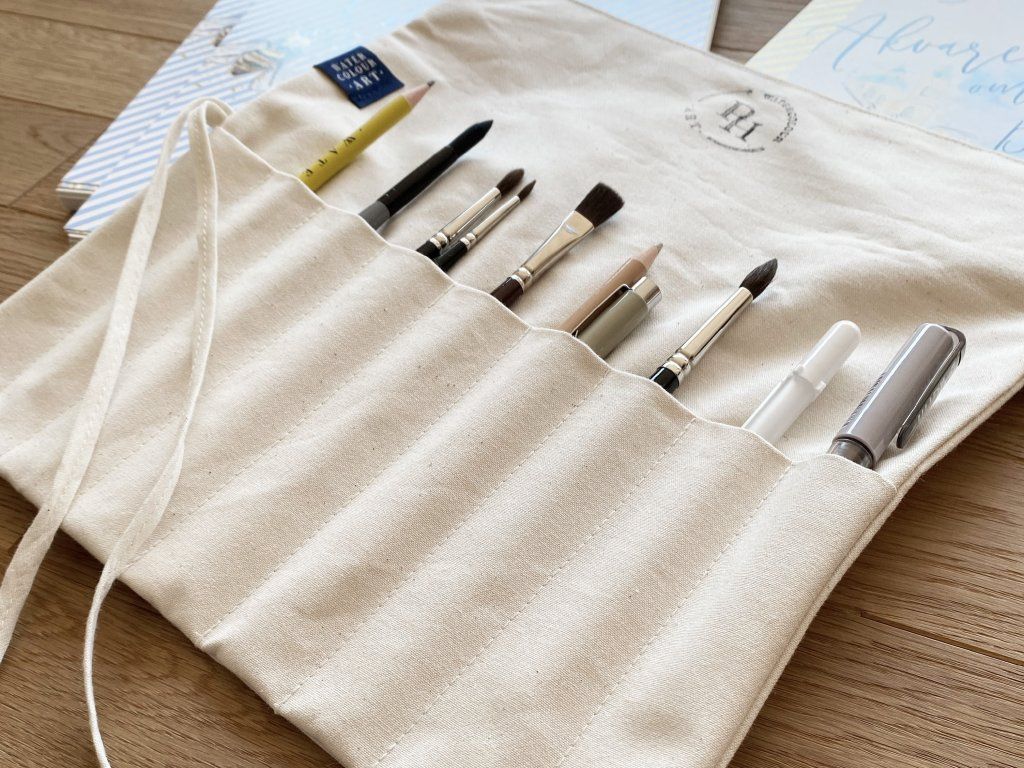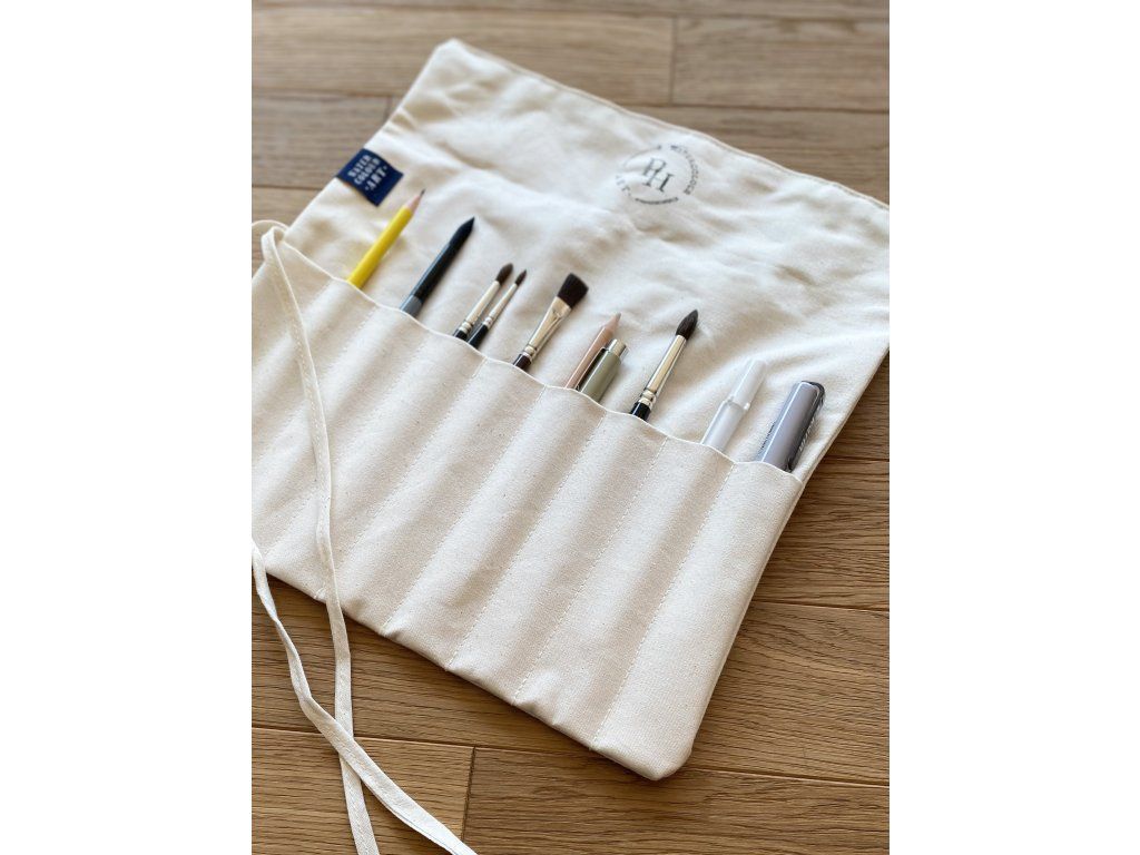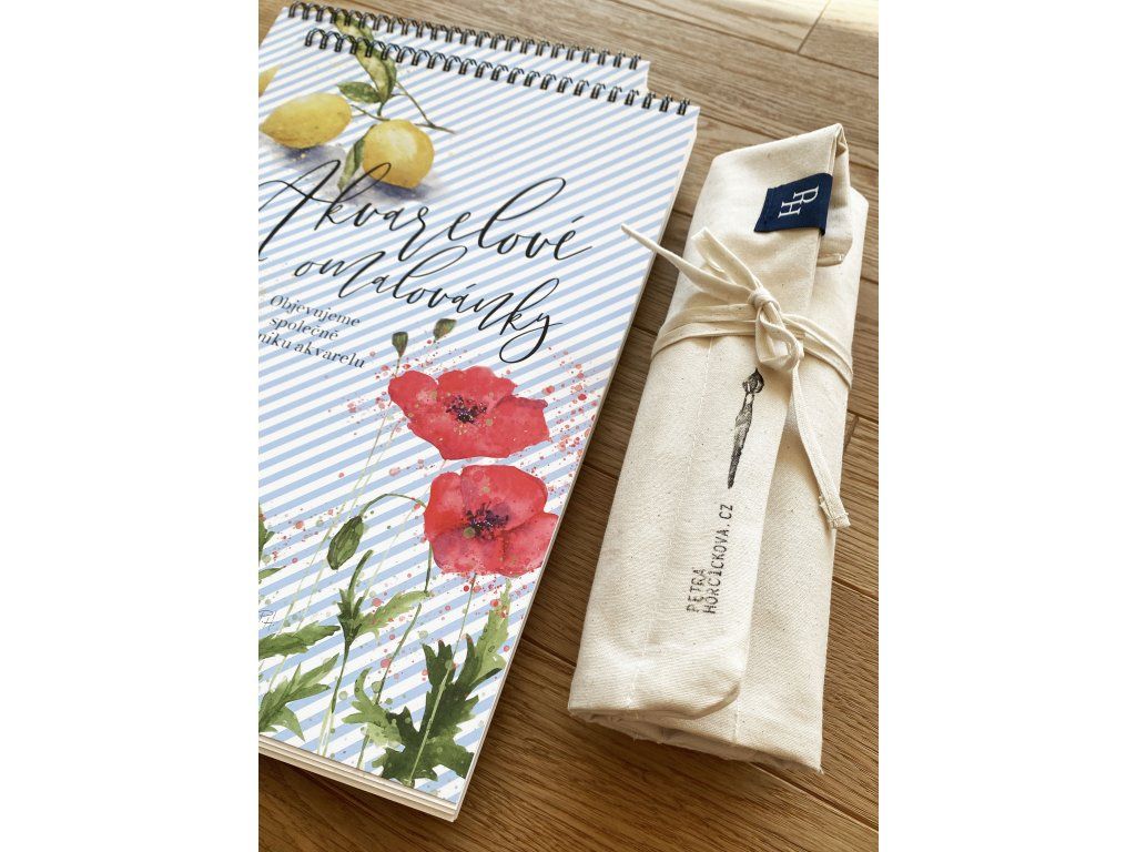 Organizér na akvarelové a štětce nebo jiné vaše umělecké pomůcky, ušitý z velmi pevného plátna, vyrobeného v České republice. Jednoduchý a čistý design, který jsem sama navrhla a vyzkoušela na svých pomůckách. Obal, který se nemusíte stydět vyndat v kavárně na stůl, ani velký ani malý, prostě tak akorát na cesty, kdy ochrání vaše pomůcky.
