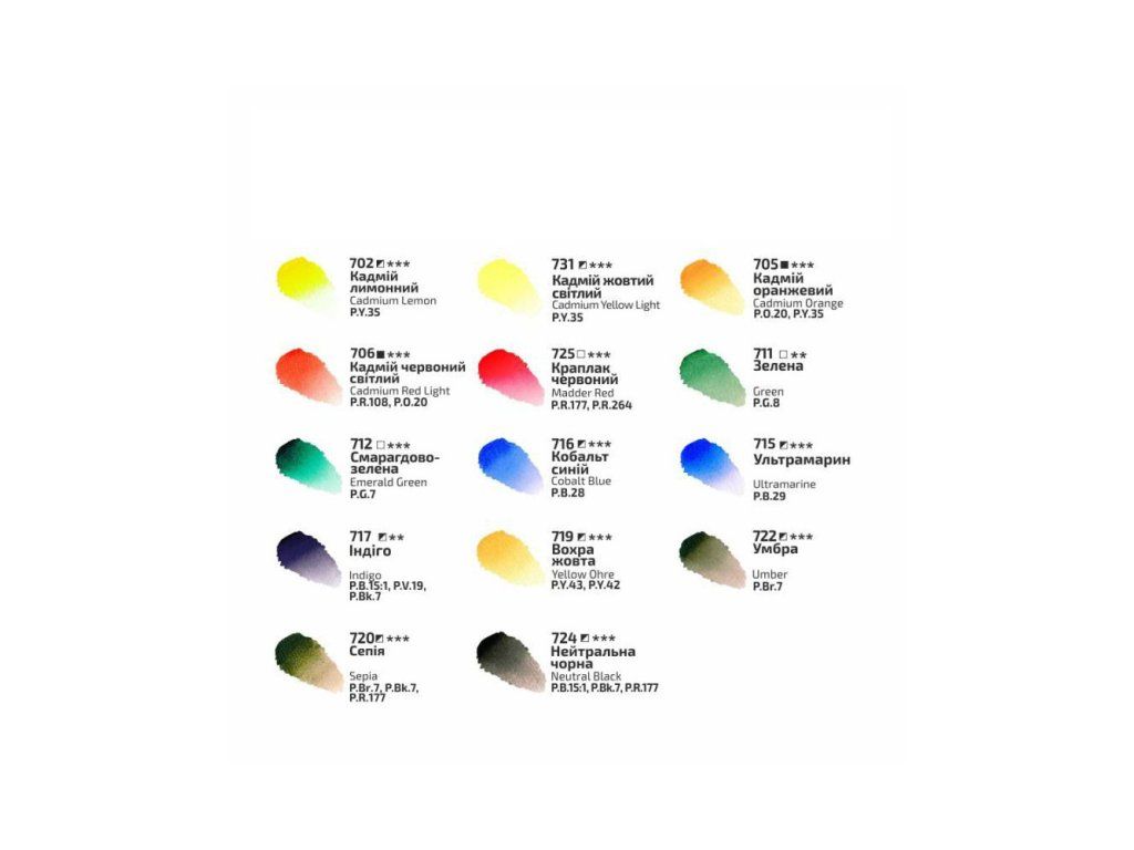 Umělecké akvarelové barvy vyšší řady Gallery od ukrajinského výrobce Rosa.