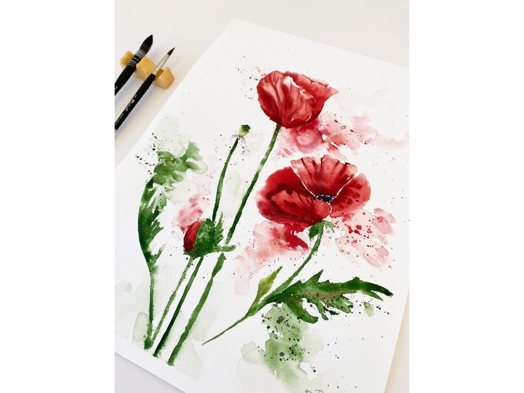 Na jaře mě oslovila Cafe galerii Zelený dům a bylo mi potěšením být součástí prodejní výstavy, kde jsem vystavila tyto tři akvarely - Vlčí máky, Anemonky a Fialky.